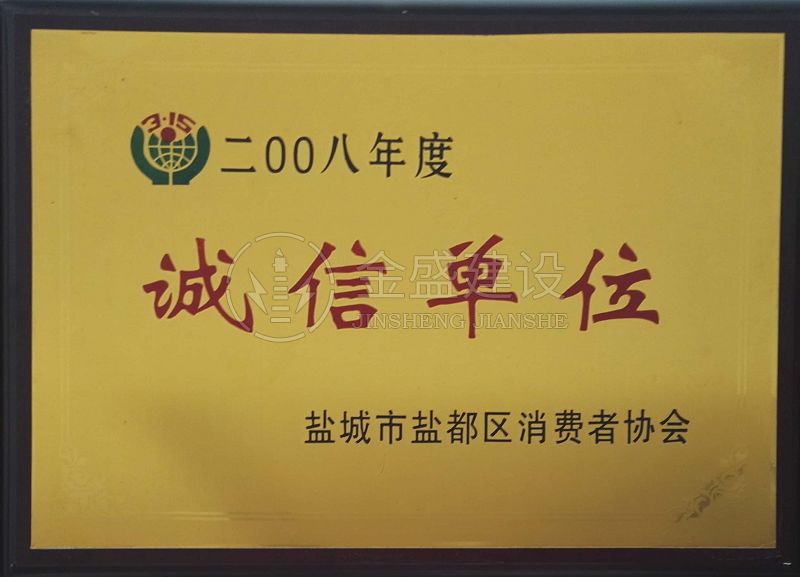 • 2007年江蘇省質量信得過安全穩定施工企業